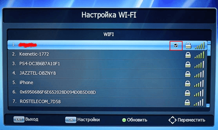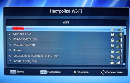 Через несколько секунд должен появиться список доступных сетей, найдите свою WiFi сеть кнопками "вверх"-"вниз" на пульте и нажмите «ОК»