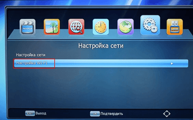 – В открывшемся окне Выберите «Настройка WiFi» и нажмите на пульте опять «ОК»