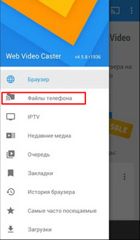 Мы установили на смартфон OS Android программу Web Video Caster.