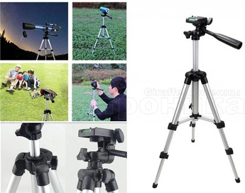 В комплекте со штативом идет чехол. Головка в комплекте, со стандартным креплением, одним уровнем, поворотная на 360 градусов (3D).