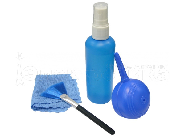 Набор для чистки мониторов, экранов ТВ, объективов, смартфонов и т.п. В комплекте: 1) кисточка антистатическая 2) салфетка из микрофибры 13 х 13 см 3) универсальны спрей для чистки 100мл. - не содержит спирт, антистатический эффект 4) распылитель "воздушная груша"