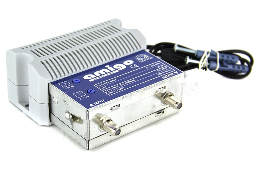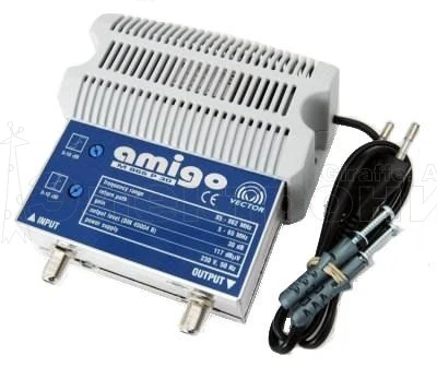Усилитель AMIGO P доступен в двух версиях с пассивным обратным каналом (5<30МГц и 5<65МГц) или без обратного канала. Параметры усилителя и его стоимость позволяют создавать эффективные, широкополосные, малобюджетные кабельные сети.
