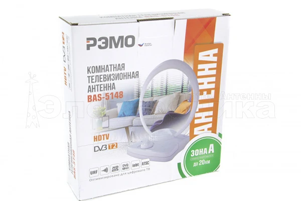 Комнатная антенна Рэмо BAS-5148-5V предназначена для просмотра цифровых каналов.