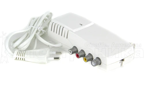 Перестраиваемый ТВ модулятор с двухполосной модуляцией Светодиодный дисплей и кнопочное управление встроенного микропроцессора Энергонезависимая память ФАПЧ кварцевая стабилизация частот несущих видео и звука Литой корпус в пластиковой оболочке Встроенный источник питания Регулировка уровня звука, выходного уровня ВЧ Блокировка от несанкционированого изменения канала Проходное суммирование по ВЧ Разъемы: видео/аудио - RCA гнездо ВЧ - F гнездо Видео вход диапазон частот: 20 Гц - 6 MГц уровень / импеданс: 1 В ± 1 дБ/75 Ом Аудио вход диапазон частот: 20 Гц - 15 кГц пределы регулировки: 0 ч 7 дБ уровень / импеданс: 775 mV RMS/10 kΩ/50 kHz ВЧ выход уровень / импеданс: 90 dBμV/75 Ω пределы регулировки: 0 ч -20 дБ выходные каналы: G/H/I/K/L/M/N/Australia диапазон частот: 470-862 MHz Частота звуковой поднесущей: 4.5 MГц, 5.5 MГц, 6.0 MГц, 6,5 МГц Подстройка частоты видео несущей: ± 2.25 MHz max. с шагом 0.25 MHz Проходные потери суммирования ВЧ Terr/SAT: 1.5 дБ Диапазон частот суммирования ВЧ сигнала: 5-860