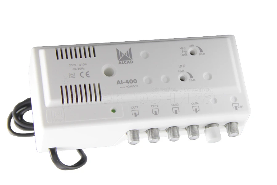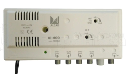 Alcad AI-400 применяется для усиления сигнала, принимаемого на пассивные телевизионные антенны для цифрового эфирного вещания в стандарте DVB-T2. Благодаря наличию четырех выходов позволяет одновременно подключать четыре телевизора или эфирных приемника. Так как усилитель обеспечивает усиление сигнала в двух поддиапазонах - 40-318 и 470-862 МГц, то стоит заострить внимание на том, что он не пригоден для использования совместно с кабельным и спутниковым вещанием.